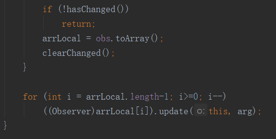 整个类中,只有notifyObservers(Object arg)中调用了这样一段代码。