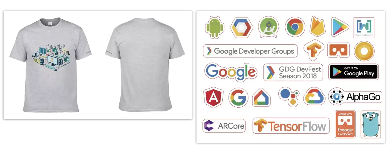 获得门票并现场签到的小伙伴门票都会赠送Google官方定制的贴纸一张。 另外, 转发此条信息到朋友圈,点赞超过50,现场向活动志愿者出示可有机会领取Google Developers的官方定制T恤一件。数量有限,送完为止哦~