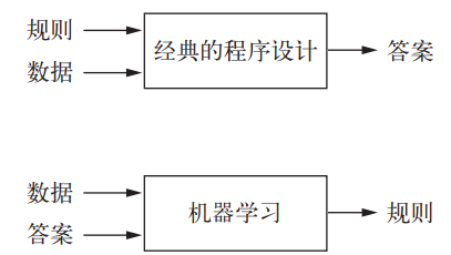 - 旧时,经典的程序时通过输入规则和需要根据这些规则去进行处理数据,系统会输出我们想要的答案,但是对于机器学习而言,人们是输入数据和从这些数据中预期得到的答案,系统输出的是规则,并且这些规则可以往后去适用于新的数据,让计算机自己得出答案。