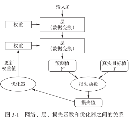 - 网络拓扑结构定义了一个假设空间,在预先定义好的可能性空间中,利用反馈信号的指引来寻找输入数据的有用表示。,选定了网络拓扑结构,意味着将可能性空间限定为一系列特定的张量运算将输入数据映射为输出数据,然后,需要为这些张量运算的权重张量找到一组合适的值。