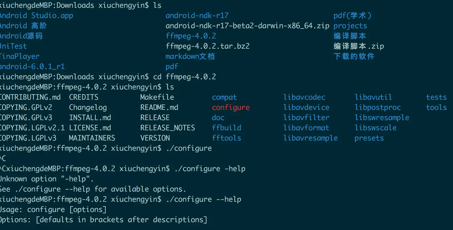 xiuchengdeMBP:ffmpeg-4.0.2 xiuchengyin$ ./configure --help