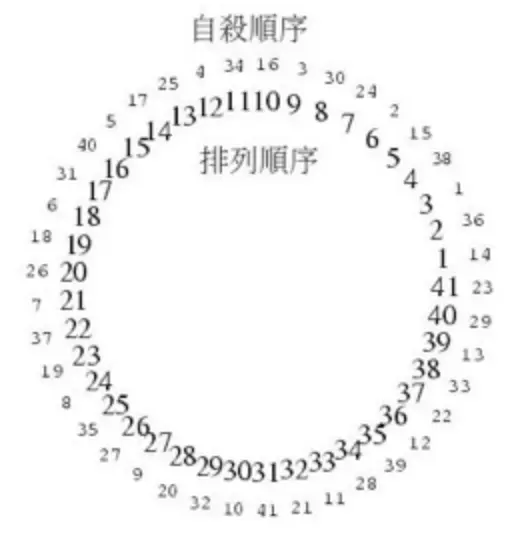 据说着名犹太历史学家Josephus有过以下的故事:在罗马人占领乔塔帕特后,39 个犹太人与Josephus及他的朋友躲到一个洞中,39个犹太人决定宁愿死也不要被敌人到,于是决定了一个自杀方式,41个人排成一个圆圈,由第1个人 开始报数,每报数到第3人该人就必须自杀,然后再由下一个重新报数,直到所有人都自杀身亡为止。然而Josephus 和他的朋友并不想遵从,Josephus要他的朋友先假装遵从,他将朋友与自己安排在第16个与第31个位置,于是逃过了这场死亡游戏。