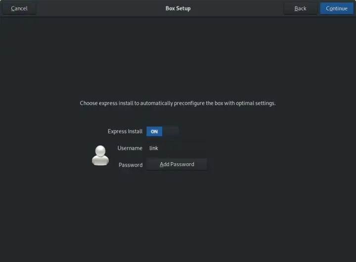 等介质下载完成(一般位于 ~/Downloads ),Boxes 会有一个“快速安装”的显示。填入账号和密码然后点击“继续”,当你确认了虚拟机的信息之后点击“创建”。“快速安装”会自动完成接下来的整个安装!(现在你可以去享受你的第二杯茶或者咖啡了)