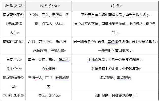 目前在同城配领域有业务需求的企业很多,虽然企业类型不同或呈现的特点有差异,但其业务需求基本相同: