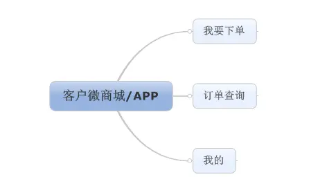 客户微商城的主要功能是下单、查单,是后台获取订单的入口,其功能结构图如下: