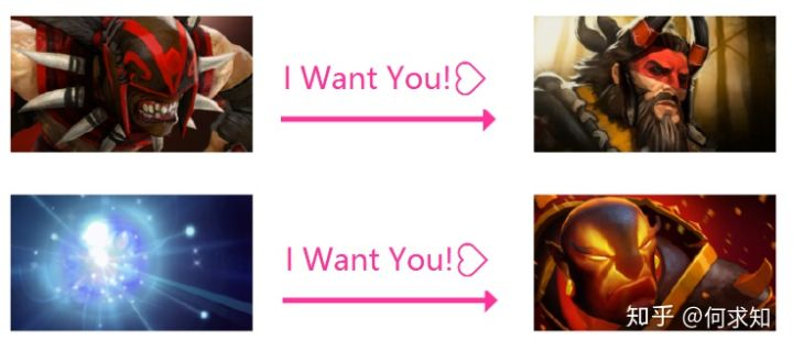 那么问题来了,这和DOTA2有什么关系?有关系!仔细想一想,可以发现「顾客挑选商品」和「队伍挑选英雄」是有共同点的: