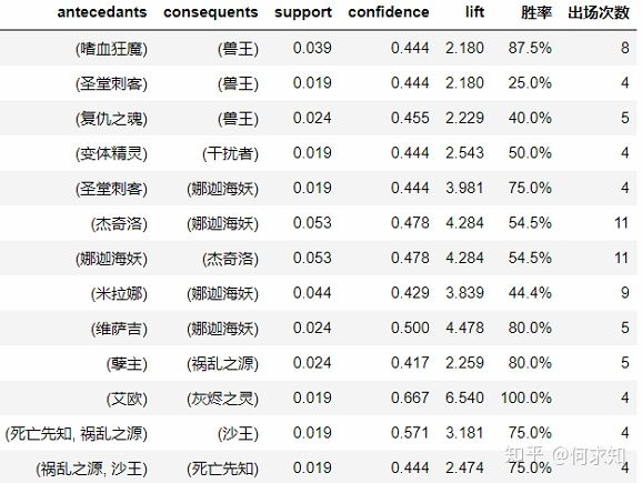 结合出场次数、Confidence、胜率三个最重要的指标,发现: