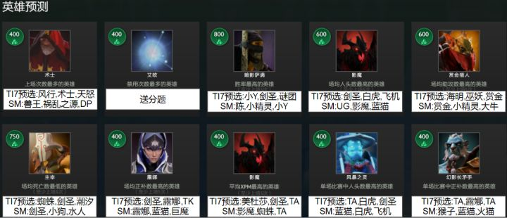 联赛预测使用 SM 和历届 TI 数据来制作小抄: