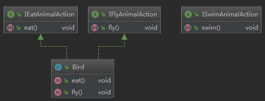 - 接口隔离原则:设计接口的时候要精简单一