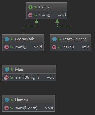 - 下层Human.java依赖抽象ILearn.java
