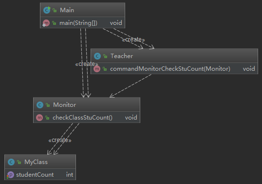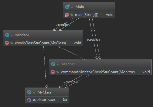 - Teacher和Monitor是直接的关系,但不应该和MyClass有直接的关系