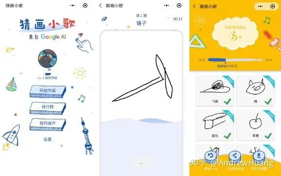 谷歌最新推出的「猜画小歌」是一个涂鸦游戏,玩家在20秒之内根据程序提示的词语作画,AI会在你画画的过程中猜测你画的内容,如果AI能够成功识别你的画作,游戏就能继续。