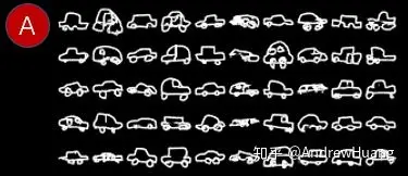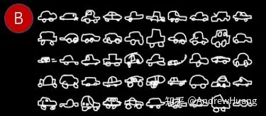 上面的图A和图B,各有50幅涂鸦汽车,其中一幅图中的50辆车是通过Google猜画小歌收集到的人类作品,另一幅图中的50辆车全是GAN模型的创作。