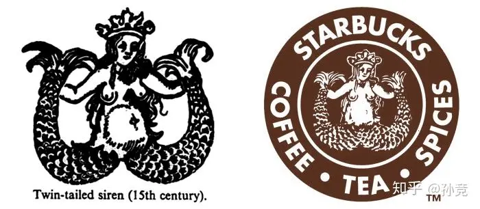 其实,海妖姐姐根本不叫星巴克(Starbucks)。「星巴克」一词是创始人为了发音响亮,在小说《白鲸记》中的人物名字Starbuck后面加了个s,做为文字招牌。图标呢?为了体现优质咖啡对人们的诱惑,他们找了个在海中唱歌勾引水手的双尾海妖的图案。这个海妖英文叫Siren,跟警笛是一个词。瞧,下图就是15世纪欧洲原版海妖图案和星巴克1971年第一版的露点商标。