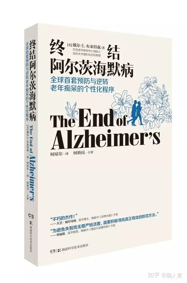 《终结阿尔茨海默病》一书以科学研究和临床效果为基础,通过调整生活方式,规范代谢平衡,预防和逆转老年痴呆症和认知衰退。该书作者Dale E. Bredesen指出目前的治疗方法把老年痴呆症当成了三种疾病的结合,可能导致大脑衰退的三十六种代谢因素,微量营养物质、激素水平、睡眠等。