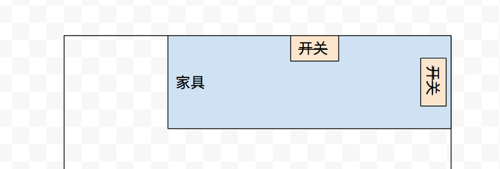 - 开关位置被家具挡住。屋子就那么点大,总有那么几个角落里的开关,家具一摆就被挡住了。那么问题来了,是要开(花)槽(钱)把线接出去呢,还是要放(扔)弃(钱)这个开关了呢?