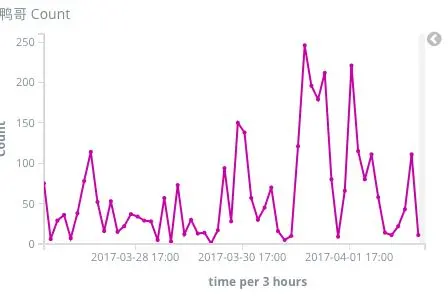 - 和ElasticSearch和Kibana连了起来,现在有了实时监控和可视化了。能看到每小时平均有多少次自动回复,多少次看群里话唠,多少次看标签云。令我意外的是已经过去一周了,可是大家的热情仍然没有消退。尤其是最简单的自动回复功能,你提到“鸭哥”机器人就会自动回复“嘎?”。这么简单的功能我以为用户会玩玩就腻了。但数据显示,直到今天还有每小时30多次的峰值调戏量。甚至有个群一晚上刷了几百个鸭哥。。真是不能随便猜用户喜欢什么东西啊。。