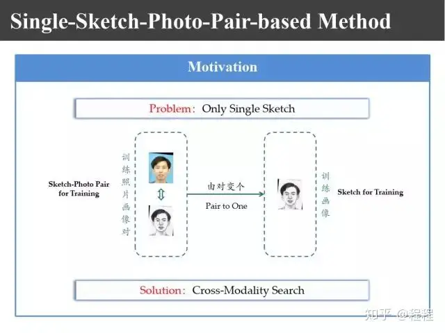 原因在于图像和画像两者之间的表达方式不同。这样一来我们就考虑可能需要做一个从画像到照片的转换系统。这就是上图所示的异质图像变换所做的工作。