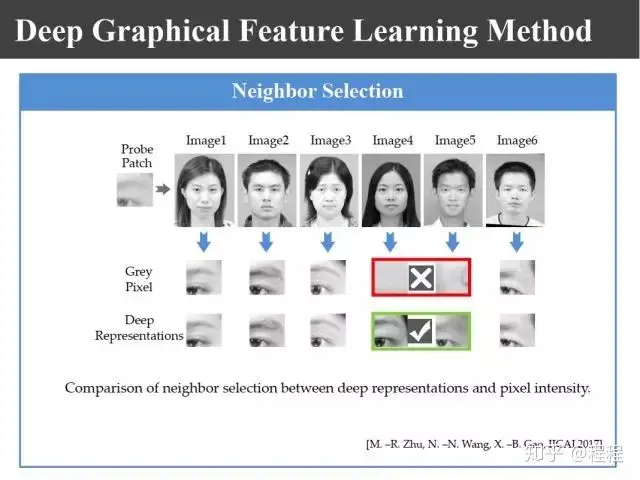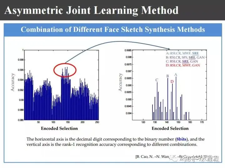 比如说上图中有些区域,比如说眼袋,不同合成方法合成出来的情况不一样,具有多样性。另外比如说眼镜,眼镜本来没有框,为了画像的效果画家往往会给眼镜画了一个框,合成出来结果有的有框有的没框。那么,如何利用这些额外信息提高模式识别的鲁棒性呢?这为我们的研究提供了新的线索。