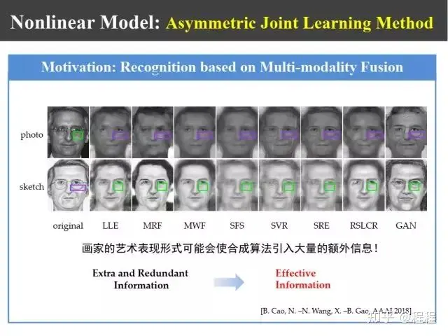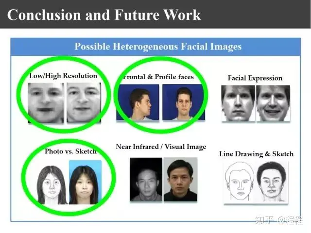 如上图,异质图像不仅仅是画像和照片、低分辨和高分辨、侧面到正面,还有其他的情况,还可以把这些方法进行不断推广。
