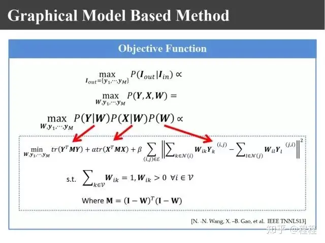同样基于概率图模型构造似然项和先验概率项,最后得到了上图所示的联合概率密度的形式。为了避免平凡解,我们还加入了一项正则项。