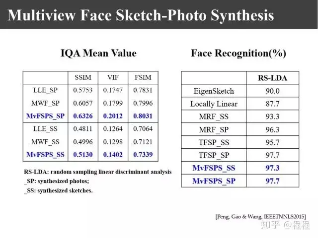 同样还可以用合成出来的照片和画像进行模式识别。如上图所示,在香港中文大学的数据库上可以达到97%左右的正确率。