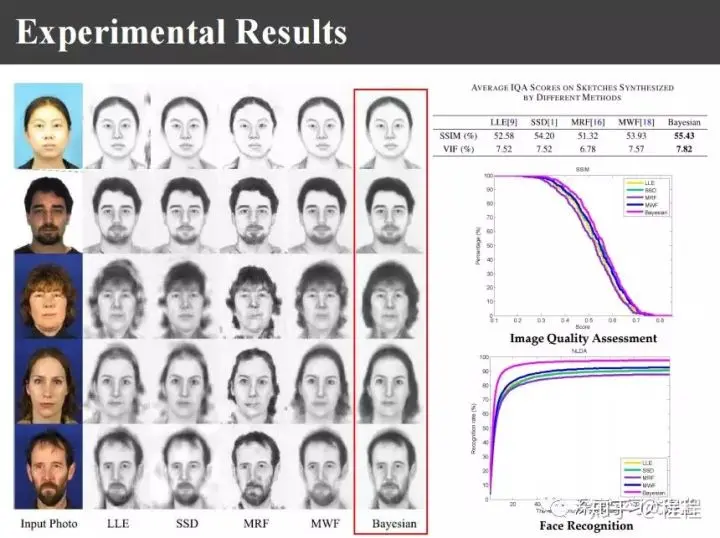 上图是由画像生成照片的识别结果,我们的方法识别率达到了99%。