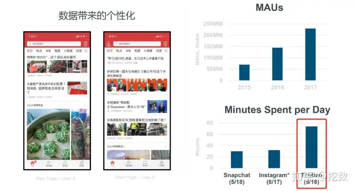 个性化+信息流让用户的日均使用时长迅猛增长,这点上今日头条领先全球