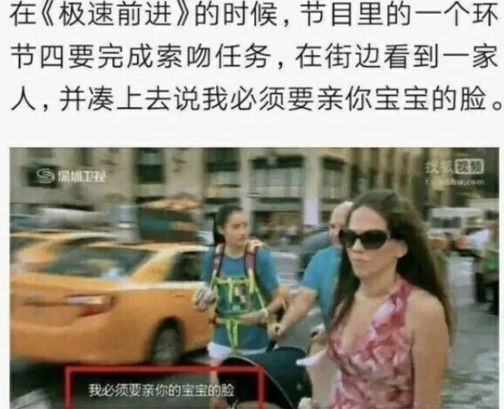 也不在于她去深圳卫视的综艺《极速前进》上亲吻人家宝宝,还要暴揍人家