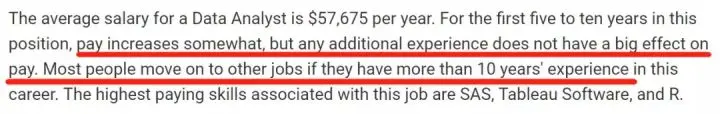 美国薪资调查网站PayScale对数据分析师(Data Analyst)的职位评价里边有一句话