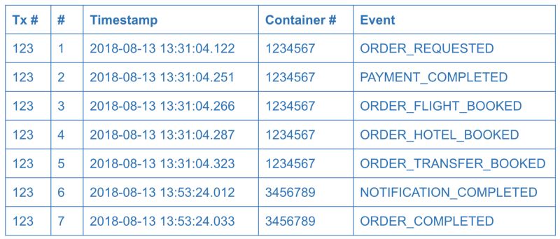 再来讨论多步事务的情况。如何确定在对账过程中哪些事务在哪些环节上失败了?一种解决方案是检查每个事务的状态。在某些情况下,这个方法并不适用(比如无状态的邮件服务发送电子邮件或生成其他类型的消息)。在其他一些情况下,我们可能希望获得事务状态的即时可见性(也就是实时知晓其当前的状态),特别是在具有多个步骤的复杂场景中。例如,一个多步骤的订单,包括预订航班、酒店和转乘。
