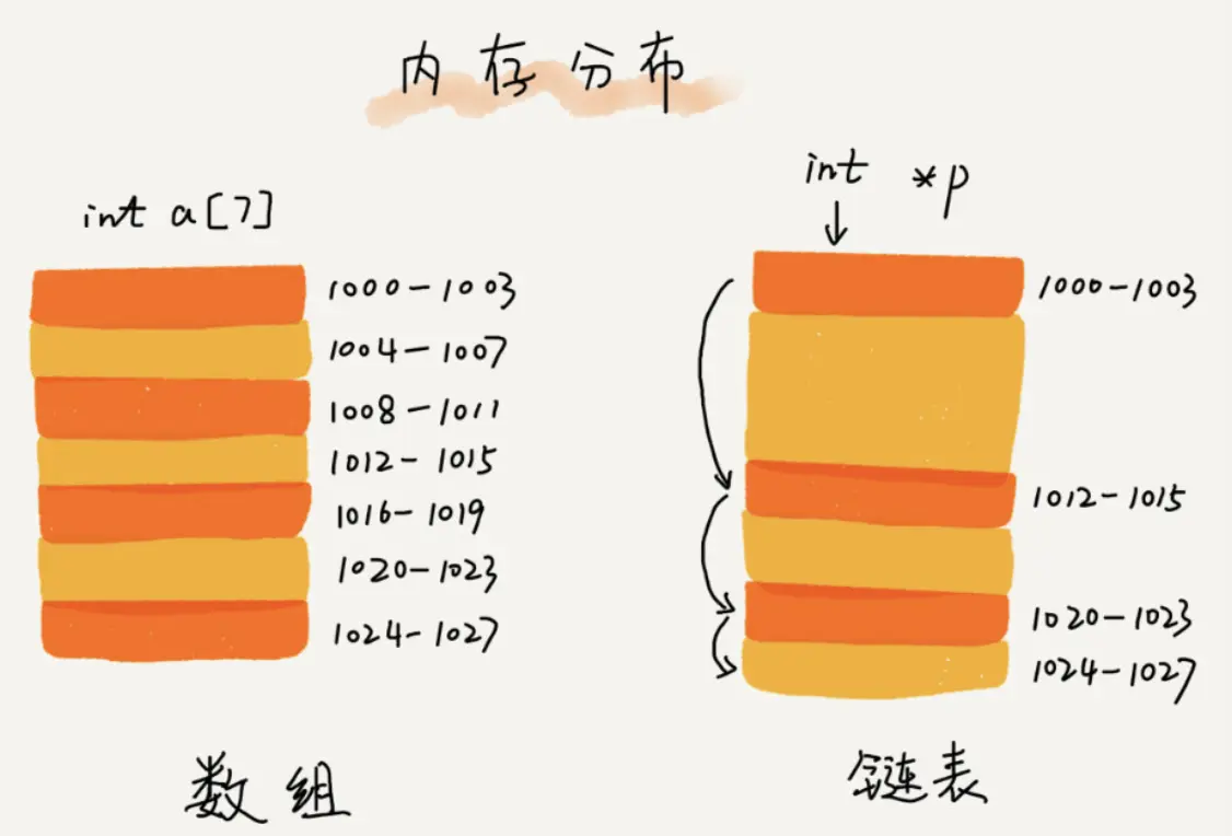 数组:连续的内存空间 链表:通过指针将一组零散的内存块串联起来