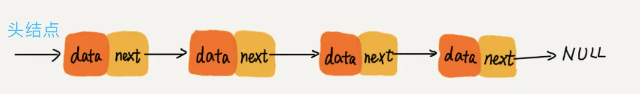 - 链表中节点由数据和指针构成(C中可以用结构体表示,JavaScript中可以用对象表示)