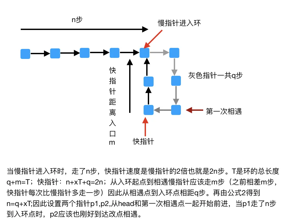 思路:总长度=起点到入口点距离+环的长度