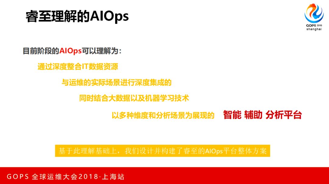 这个是我们睿至对于AIOps的理解,可能大家对于它的理解都不太一样,这个我们可以后面做一些更进一步的交流。