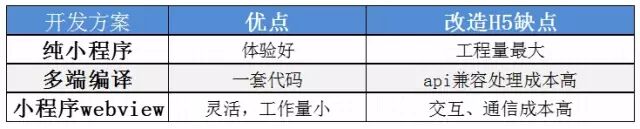 1.H5 转成小程序方案路线优缺点对比: