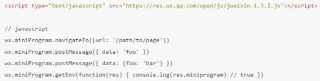 3、H5 中引入微信的 js 引入的 js 写的是 H5 跳转微信小程序的 API 实现,这个在H5首页中引入即可,如下图示例