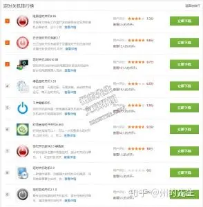 这种软件在网络上一搜一大把,在某个软件下载网站上还有一个专门的定时关机软件排行,如下图所示: