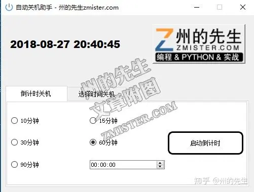 文章首发州的先生博客:使用Python让电脑自动倒计时关机 - 州的先生 及微信公众号:州的先生(ID:zmister2016)