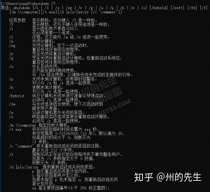 shurdown /rshutdown命令所有的使用参数如下图所示: