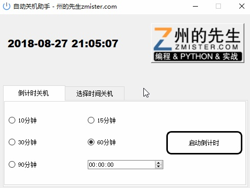 文章首发州的先生博客:使用Python让电脑自动倒计时关机 - 州的先生 及微信公众号:州的先生(ID:zmister2016)