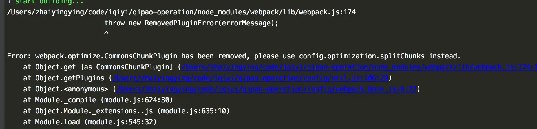 问题 一 webpack.optimize.CommonsChunkPlugin has been removed, please use config.optimization.splitChunks instead.