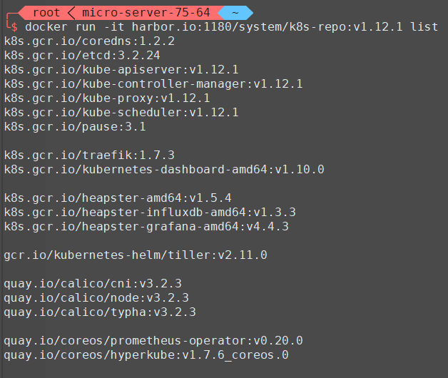 docker run --restart=always -d -p 80:5000 --name repo harbor.io:1180/system/k8s-repo:v1.12.1