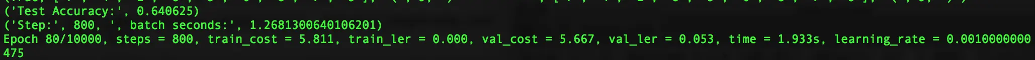 val_cost, val_ler, lr, steps = session.run([cost, acc, learning_rate, global_step], feed_dict=val_feed)