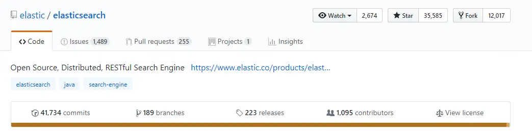 elasticsearch 是基于lucene的高度可扩展的开源全文搜索和分析引擎。官网上介绍是一位程序员为了给他厨师妻子做一个食谱搜索引擎。使用lucene开发,后来发展成为现在的elasticsearch。第一个版本发布于2010年,现在github发展的特别活跃,到今天,已经有1100位github的代码贡献者,223个发行的版本。