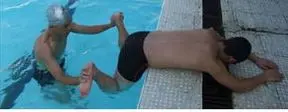 首先来看蛙泳腿。关于脚部的动作标准,请仔细观看下图。