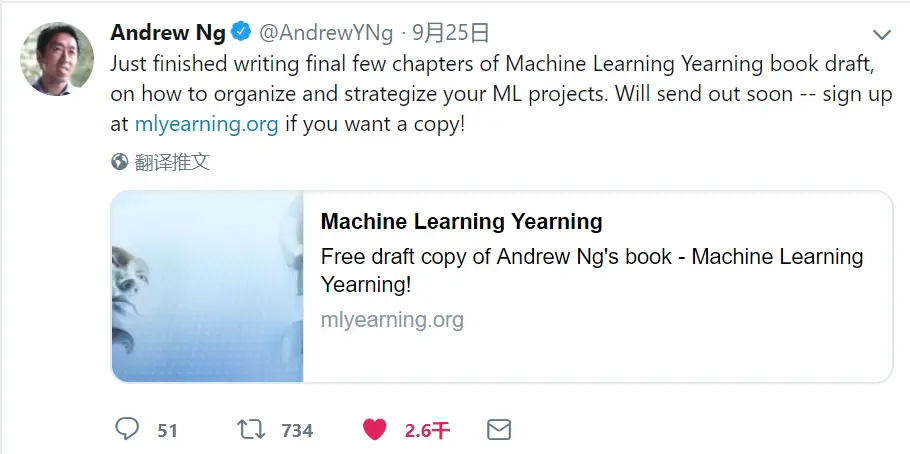 吴恩达老师在上个月底宣布终于完成了他最新的书籍《Machine Learning Yearning》的最后几个章节: