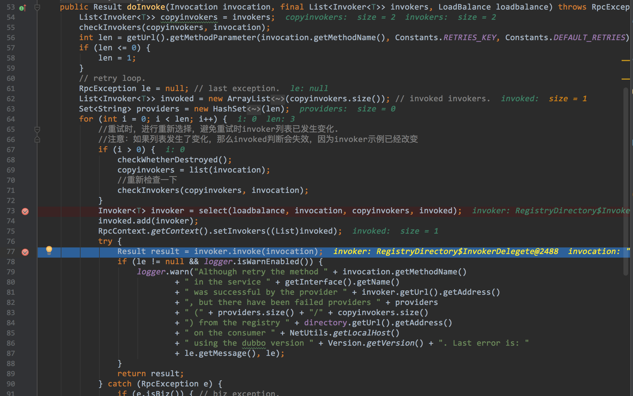 Directory中找出本次集群中的全部invokers - 在