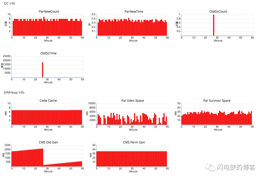 发现old gc的时间缩小到原来cms的1/100,窃喜。接下来分析gc日志,来验证我的猜想