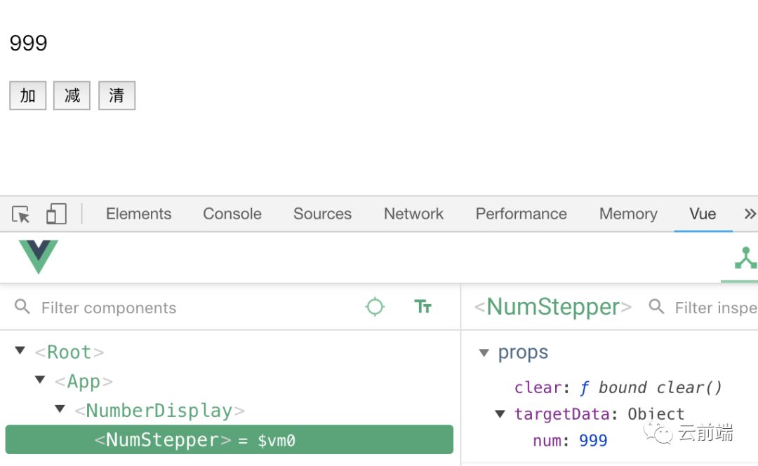 测试场景中需要一个额外的 <NumberDisplay> 组件,用来重现外部组件、向目标组件传递数据和方法,并检验目标组件是否正确修改了外部组件的状态。